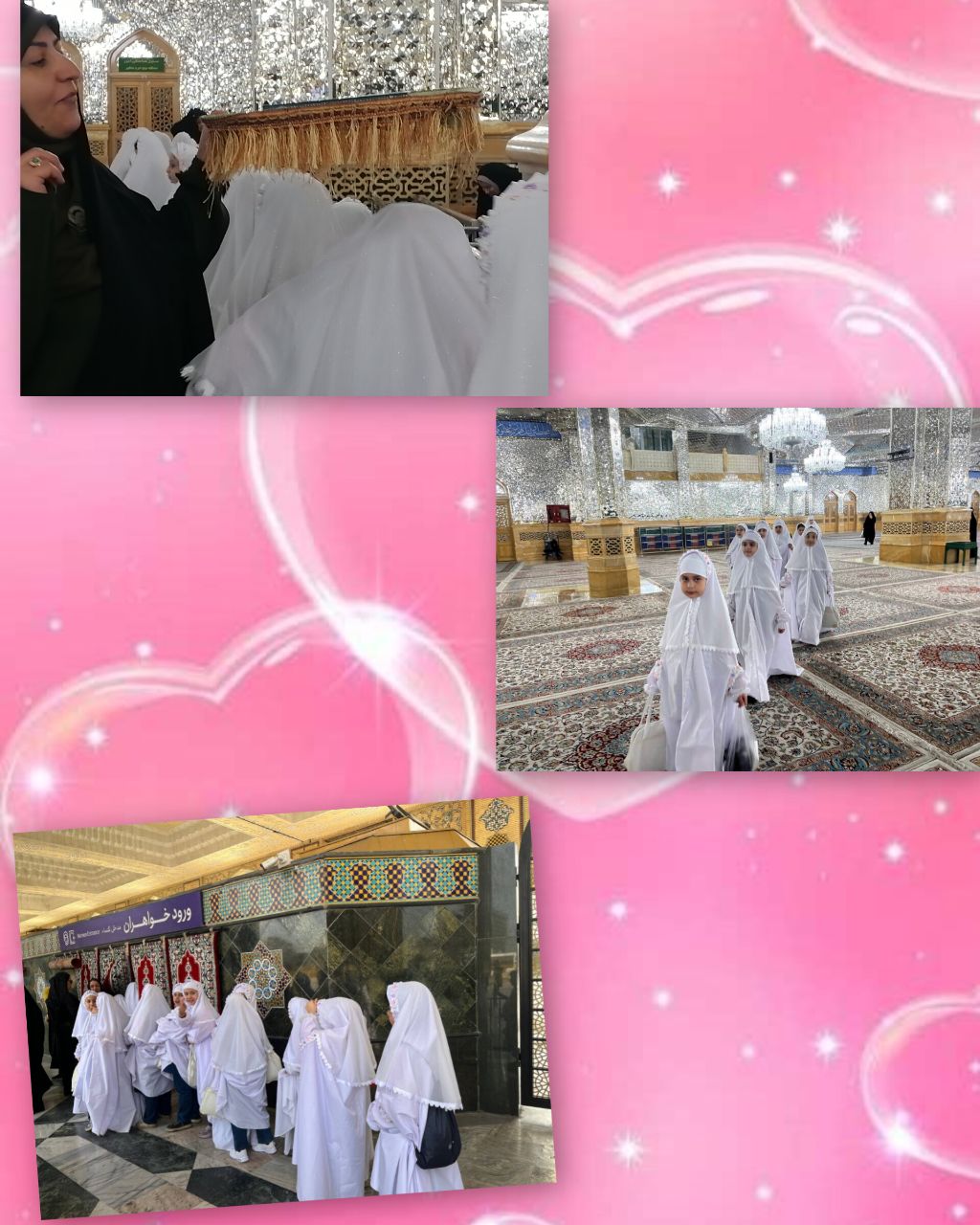 فرشتههای زیبای دبستان دخترانه پویندگان رسالت یک، امروز سوار بر بال فرشتهها عازم زیارت امام مهربانیها شدند.یک روز زیباو پرخاطره با حضوردختران عزیز پایه سوم در حرم رضوی به میزبانی امام رضا امام مهربانیها